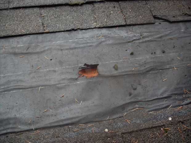 Quiere dejar intacto el contrapiso (alquitranado). Rasgó el alquitranado aquí con mi prybar, en busca de un clavo. Es muy fácil de rasgar el contrapiso # 15, que muchos instaladores de techos comerciales. Asegúrese de que cualquier lágrimas son reparados con el cemento para techos.