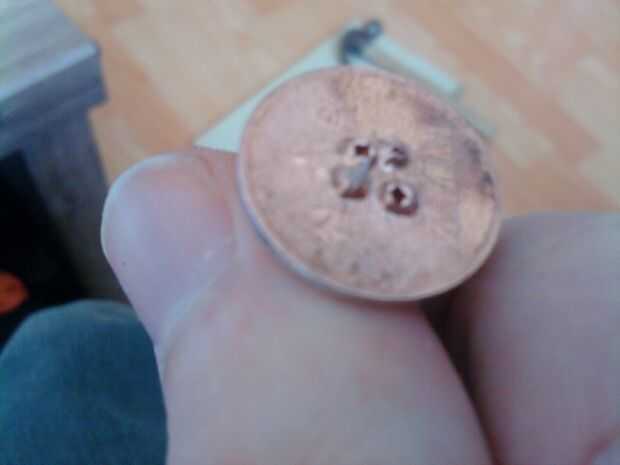 Ahora debes repetir este paso al menos una vez más, pero le sugiero que haga al menos 4 agujeros total, formando un cuadrado alrededor del centro de la moneda. Usted debe hacer todos los agujeros se enfrentan a la misma dirección, de lo contrario podría tener afilados bordes hacia fuera (esto puede ser deseable, no sé).
