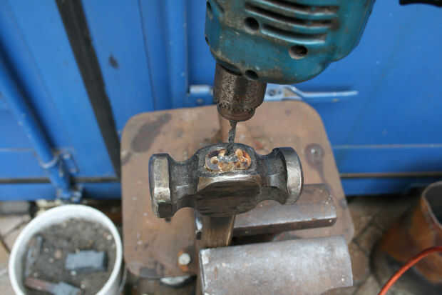 Compré un martillo viejo por $2 en una tienda de restauración cercano con el objetivo de convertirla en un nuevo martillo con un mango de madera dada vuelta ceniza.Paso 1: Retirar la manija vieja y limpiar la cabeza del martillo. Lo primero que hice