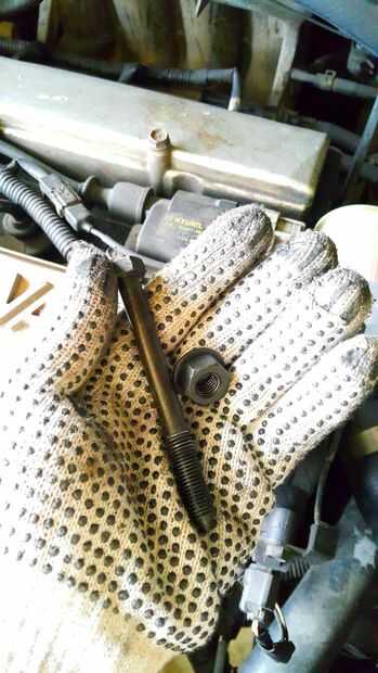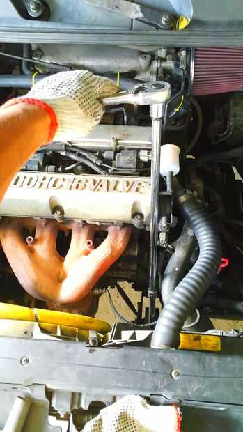 El Monte es sostenido por cuatro tornillos 14mm. Usé a powerlube 5 minutos antes de quitar para hacer mi vida más fácil. Necesito una dispositivo realmente larga extensión para retirar los pernos.
