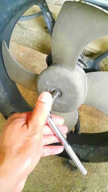 Una tuerca de 8mm sostiene las aspas del ventilador al eje del motor. 3 tornillos de cabeza Phillips mantenga el motor a la cubierta.