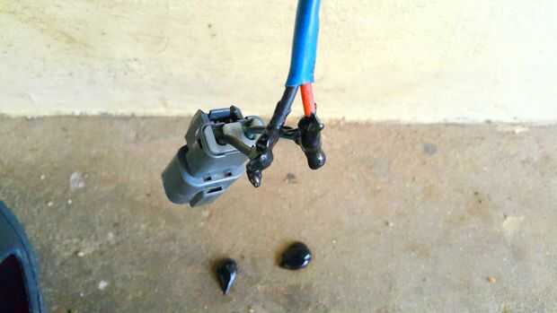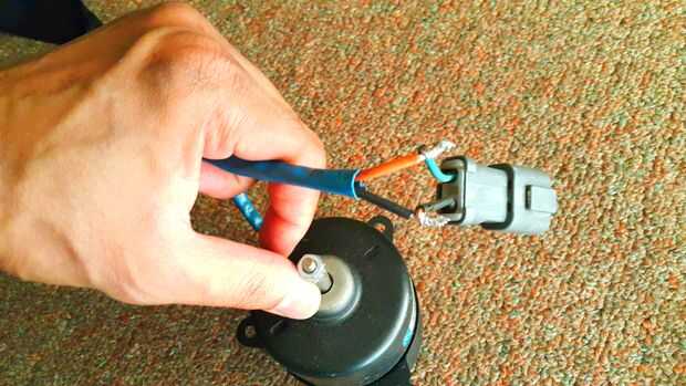Ya que el nuevo motor no viene con el conector eléctrico, tuve que cortar y soldar el oem uno. Había reutilizado el mismo alambre de la manga así. Líquido de la cinta fue utilizado para aislar los empalmes.