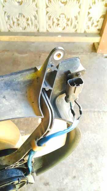 Los dos 10 mm en la base del radiador eran apretado apretado y el superior dos pernos de 10mm para sostener la cubierta del ventilador en el radiador. Se vuelven a unir el conector eléctrico.