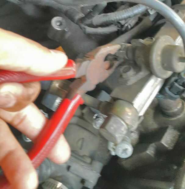 Usando unas pinzas para quitar la abrazadera de la manguera me deslicé la manguera a la base del regulador. Con un cubo de 10mm y Rachet sacó los dos pernos y sacó el tubo de vacío.