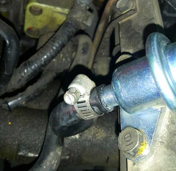 Instalación es la inversa de la extracción. Duh. El clip de manguera que reemplacé con una abrazadera de la manguera para una instalación más firme. Iniciado el coche y ella ronronea muy bien. Ah... Buena chica.