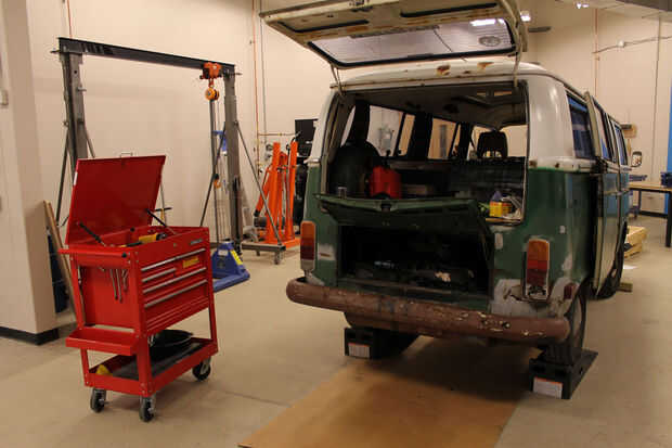 Sustitución de un tubo de bowden en un autobús VW tipo II ventanal en TechShop