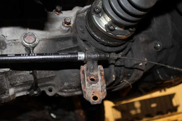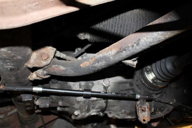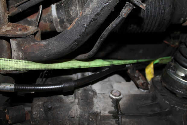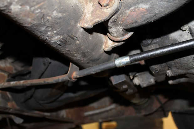Bowden tubo debe tener una considerable curva abajo hacia el suelo. Apriete la tuerca hasta que hay justo por debajo de 1" de juego en el pedal del embrague antes de que se acople.