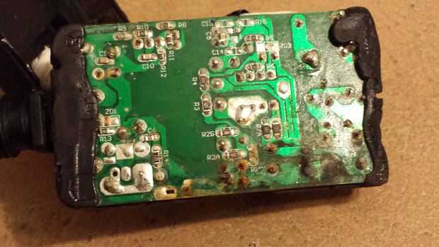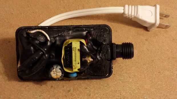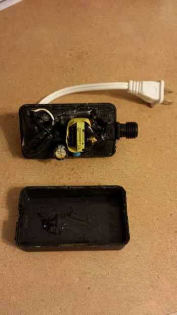 El otro día, llegué casa y los muñecos de nieve no subieron inflar o iluminación. Tomé un vistazo y se parpadea lentamente y brevemente. Claramente hubo un cortocircuito, había desconectado el adaptador y lo llevó dentro. Podía oír la fuente de poder que chisporrotea mientras estaba conectado. Una vez abierto el caso, pude ver las marcas de quemadura en el circuito.