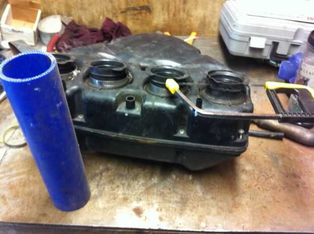 Entonces medí la profundidad del labio sobre la goma de entrada original, en este caso es 10mm (desde el borde hacia la cresta obvio en la foto. Tuve un 15mm más a donde tope para el airbox. Entonces agregué 5mm para permitir la contracción y darles un "empujón" del tanque para sujetar más firmemente las cosas en su lugar
