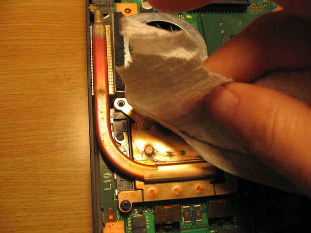 Antes de colocar el endoesqueleto, necesita limpiar restante compuesto termal del disipador de calor de la CPU con el 90% Isopropanol y Añadir nueva gota de compuesto térmico.