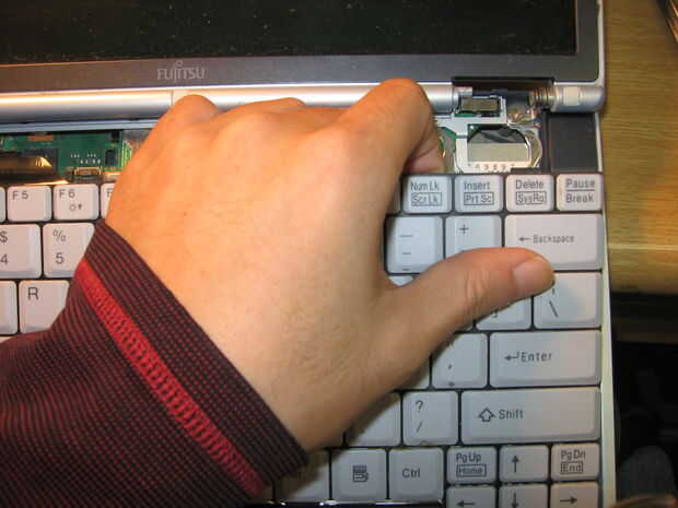 No pude averiguar cómo desmontar más y tardó 30 minutos para saber que necesitaba para sacar el teclado. Mi teclado era fijo con cojín adhesivo doble cara.
