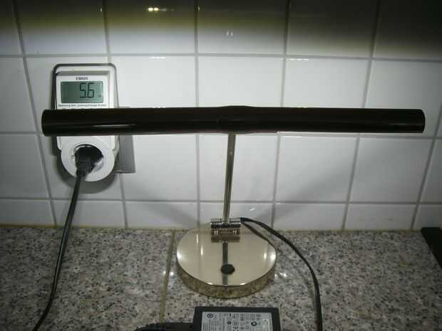 La foto de arriba muestra la lámpara con mis lámparas LED mide 5,6 vatios en funcionamiento. Se trata de menos de 40 vatios que comerían las lámparas halógenas.