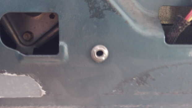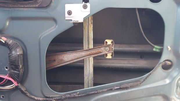 Una vez que todos los remaches se quitan (había cuatro de ellos en mi carro), mueva el regulador de abertura de la puerta. Puede ser necesario retirar la cinta y dejar la ventana abajo parte-manera de la diapositiva en el extremo del brazo fuera de la pista.