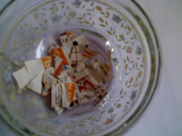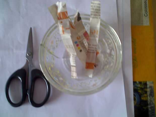 Cortar larga tiras de periódico. Luego cortar estas tiras en trozos muy pequeños y agregar al contenedor. También puede añadir trocitos de algodón en la mezcla.