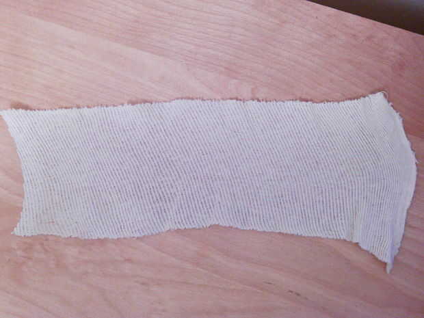 • Comience cortando un trozo de Gasa lo suficientemente grande como para atar alrededor de su muñeca.