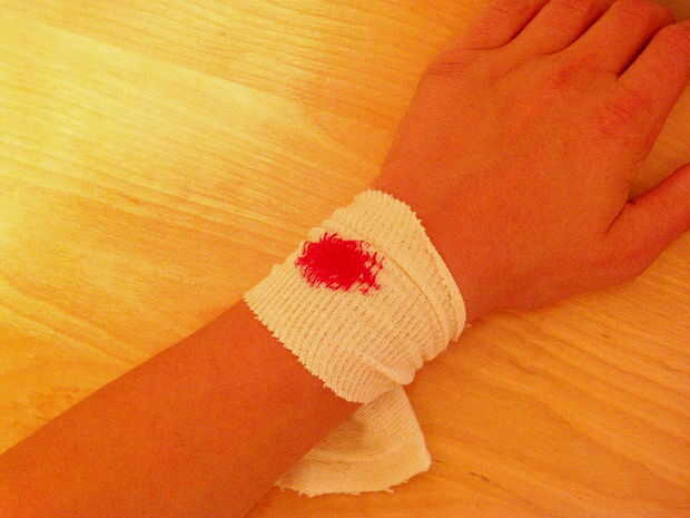 • Si no te gusta sangre entonces omitir este paso, tomar la sangre de Sharpie/falso y empate en lo que crees que es buena cantidad de sangre para su "corte".