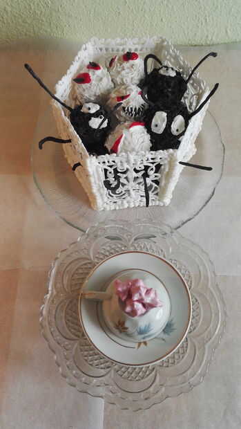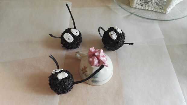 Así que este postre se centra en ellos, pero con un toque malvado; puesto que tienen este deseo de dulces, y ya que me encanta la película "Gremlins" hice una mezcla de ambas cosas y conseguí mi Susuwatari Gremlins!!!! Así que creo que es mejor mantenerlos en una jaula, en caso de que las cosas comienzan a salir de las manos...