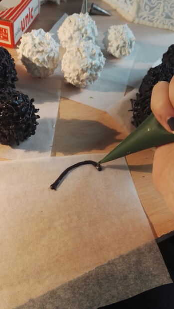 ** Para la fabricación de la tubería sólo brazos dulces negro se funde sobre el papel de pergamino y deje que se endurezca hasta el momento de servir.