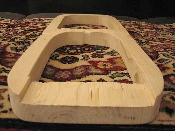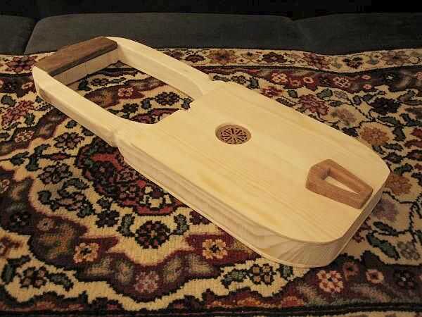 Ahora corte un bloque de la cabeza de la estructura, hasta la mitad de la parte superior de la misma. (véase las fotos). Después de cortar un bloque de tamaño correspondiente de la madera dura, para encajar en el lugar vacío has cortado - encolarla y utilice abrazaderas para empujar las piezas entre sí con firmeza. Esta parte del consolidado agarra las clavijas de afinación a la cabeza de la lira. Aquí usted será taladrar los agujeros para las clavijas de afinación, pero, por favor, lea cuidadosamente las instrucciones, porque esta parte de la fabricación de Lira es muy sofisticada y puede contener algunas trampas. Tengo un buen amigo, que construye clavecines, por eso pude conseguir algunas clavijas para clavecín, pero puede usar las clavijas de la cítara, también. En primer lugar, cuando se perfore el orificio para clavijas de acero (cítara u otro), recuerde que debe hacer un agujero con un diámetro menor que las clavijas tienen. Utilicé las clavijas con 4 mm, y el agujero fue 3,8 mm. Esta proporción (0,9) es muy importante, si las clavijas no se ajusta fuertemente y no pueden resistir la tensión de las cuerdas. (Apenas encontré un taladro del tamaño dado, pero no renunciar :-)) Nunca usar otra madera que la madera dura - la perforación en él será más problemática, pero las clavijas deben caber con seguridad. Más de 6 cuerdas plan los agujeros en la línea de 'W', sobra lugar y para aumentar la distancia entre los agujeros; los orificios con distancias muy cortas entre sí amenazan el bloque a copiar cuando inserte la clavija. Y cómo insertar las clavijas en los agujeros taladrados: tomar un jabón (no líquido y sólido) y cubrir con ella la parte de la clavija enterrarán en el agujero, antes de insertarlo. Esto es muy importante, de lo contrario las clavijas va a llorar cuando gira. ¿Y cómo insertar? Prueba con un martillo de goma, pero Coloque un bloque de madera pequeño entre la cabeza de la clavija y el martillo de goma y asegúrese de que mantener la clavija en el ángulo correcto. Tenga cuidado, esta es la parte más peligrosa del edificio, y por eso se debe utilizar el tamaño correcto; el diámetro no agarre como necesario, pero si el agujero es demasiado estrecho, este es el punto, (la percusión) cuando se corte el pegblock de madera dura. ¡Ten cuidado!
