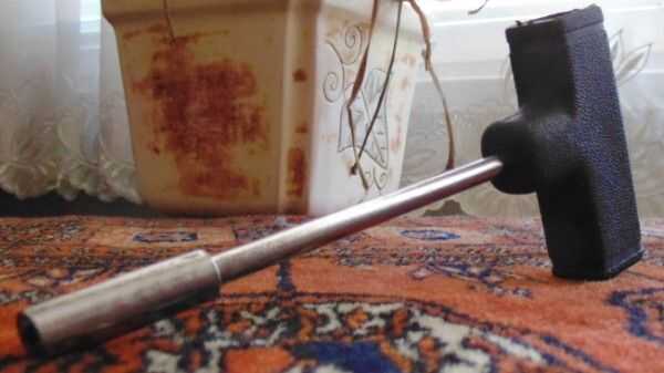 Y se necesita un sintonizador de llave o manija. Mía hice con un destornillador en forma de T, ajuste un metal pequeño 'capturador' en su tuerca - lo siento otra vez, como un hablante no nativo no el nombre propio de esta cosa pequeña, especial, pero lo hice de una tuerca que estaba encajando en la tuerca grande...