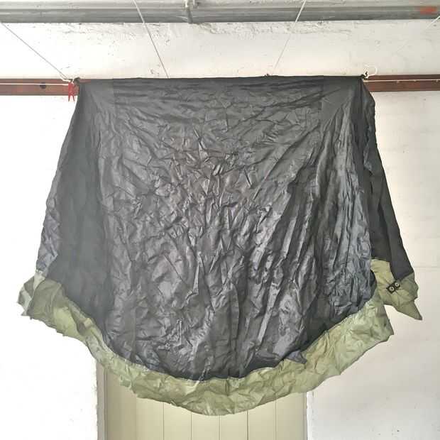 Usé un alambre de cobre para hacer un gancho improvisado. Estos Fije los ganchos laterales y el retrovisor (opcionalmente la salida maneja demasiado...). Puesto que la tela de tienda es extremadamente fino y ligero, es fácil de almacenar en un compartimento lateral durante la conducción. Asegúrese de empujar el borde inferior sobre los asientos de conductor extendidos. Esto le da suficiente espacio para la cabeza para dormir y nadie puede mirar dentro del exterior.