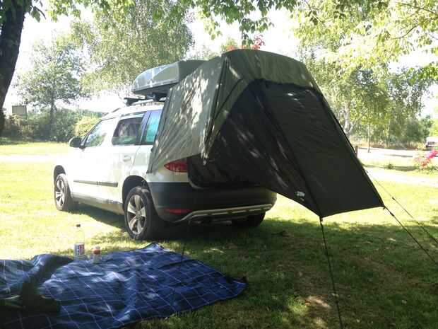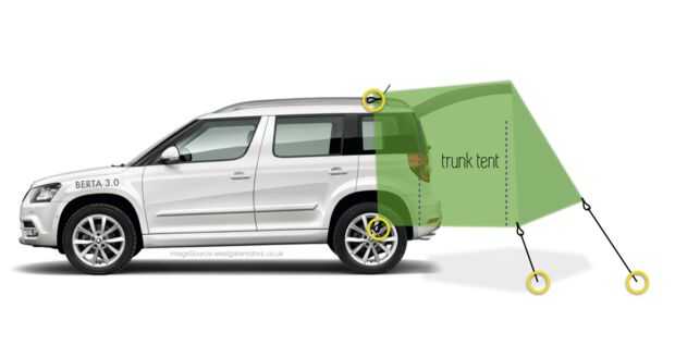 Si usted deja un sitio de la tienda y quiere volver, utilice dos piedras para marcar la posición de las ruedas traseras y dejar la tienda conectada a tierra. Después de volver a posición de su coche en el mismo lugar, tire hacia arriba de la tienda y abre la puerta del tronco. Y listo, tu tienda de tronco otra vez.