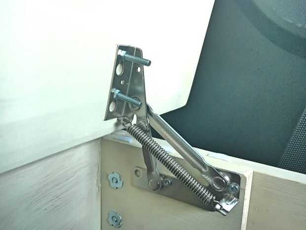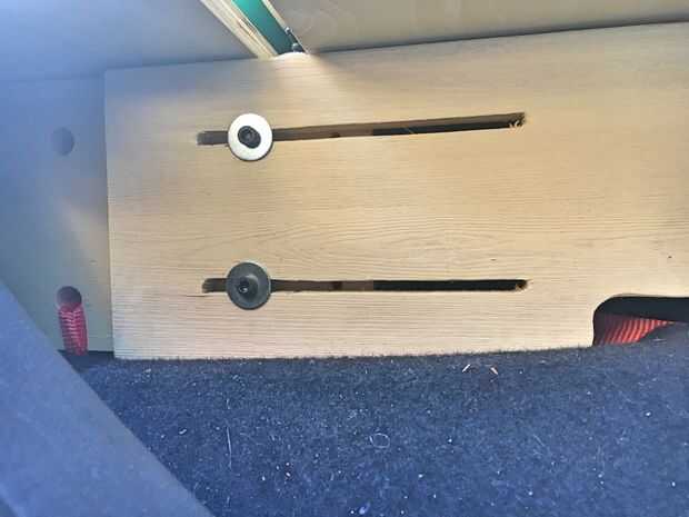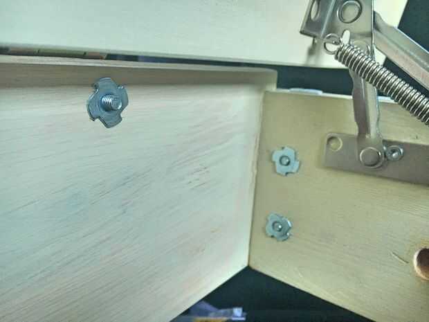 El panel central se conecta a la compatibilidad con dos bisagras de armario. Tengo mina en ebay por unos pocos dólares. El apoyo cruzado está nivelado con el panel superior. Esto no es necesario y puede estar el panel superior con el apoyo de la Cruz sin la necesidad de las barras de madera como soporte. Tienes que tener cuidado aunque cómo montar las bisagras de armario (cuadro 5). Dependiendo del tipo que usted está usando, no abren si el panel superior está montado demasiado cerca para el siguiente apoyo de panel/cross.