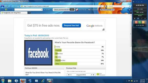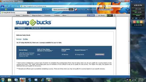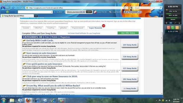 El principal de ellos, utiliza su motor de búsqueda y cada vez y mientras que son recompensados, este es también donde se le otorgó por dólares que tus amigos (incluso me ;) llegar a usted. Así que básicamente usted gana uno swagbuck digno de una cantidad dada, generalmente alrededor 7-10, además de cualquier bucks que gano, dicen gano 6, entonces obtendrá su 7, además de mis 6, para obtener un total de 13.