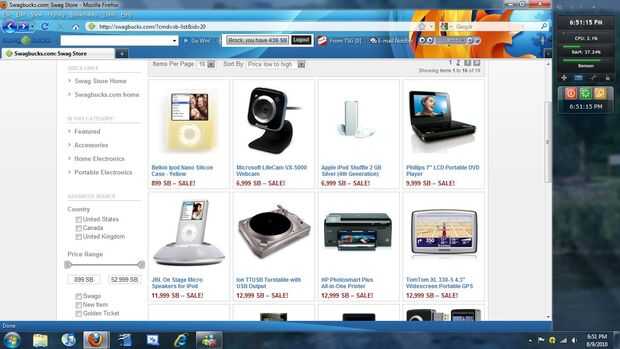 La tienda Swag es donde canjear tu dinero para fabuloso... OK no siempre fabulosa, pero no de premios menos.