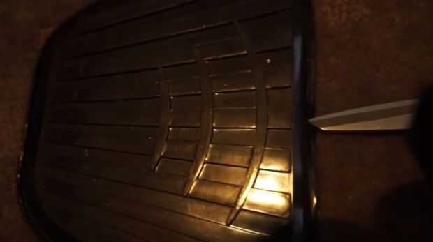 Cuadro 2 muestra que usted necesita hacer el corte. Todos tu tratando de hacerlo aumentar su capacidad para comprimir y descomprimir así encontrar el centro de la almohadilla del pie. Hay un surco que recorre el centro y se alinea con esa cámara. Barbecho que en el borde y cortar una pequeña sección sólo debe ser un centímetro en como 2 o 3 cm de largo. De esta manera wont ser visible cuando ponemos todos juntos. Esto aparece en el cuadro 3.