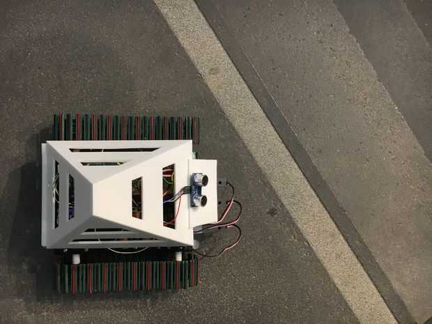 Academia de Fremont nos proporcionó con las pisadas del tanque. Desde los peldaños no se conectaron originalmente a los motores, nosotros 3D impreso los adaptadores blanco. Además, para hacer el depósito de peldaños se mueven suavemente, que nos pegan pedazos de caucho en las desavenencias del tanque.
