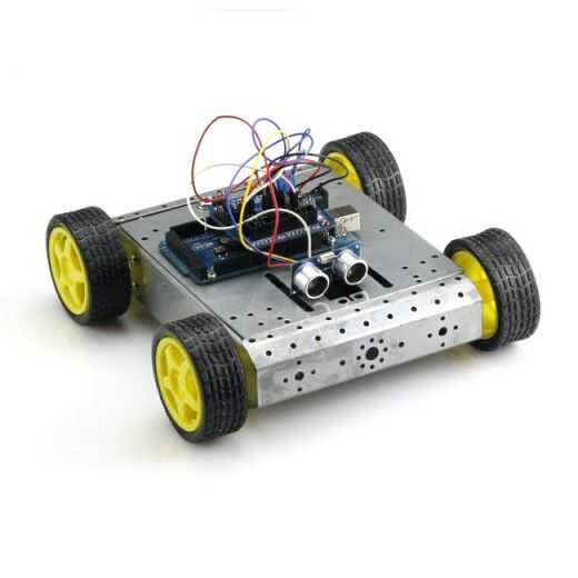 Es importante elegir un coche RC prefabricado que (1) le permite suficiente espacio para poner el controlador y los cables y (2) es lo suficientemente fuerte como para ser deconstruido y armar muchas veces. Le sugerimos que use un kit de Arudino coche (como el ilustrado aquí) porque te da la libertad de personalizar todo: donde pones los sensores, cuántos motores le gustaría, peso de distribución, etc.. Cada kit de coche es diferente y la mayoría vienen con instrucciones. Armando el coche es la parte fácil!