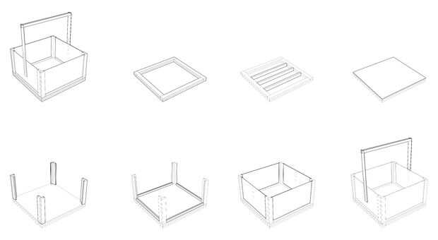 8 de los 48" 2x4s deben cortarse hasta 44-1/2". Se superponen y la pila y van de la mano como en el segundo dibujo arriba.