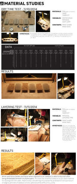En la prueba y de que la hipótesis arena tomaría más tiempo en secarse con PVA de serrín, a pesar de que se seque más duro y más fuerte cuando está expuesto al aire. Nuestras pruebas demostraron esto para ser el caso, que hizo aserrín una opción mucho más viable para continuar nuestras pruebas de impresión. Serrín seca sin problema cuando se sumergió debajo de varias capas con PVA, mientras que arena tiene cierta exposición al aire.