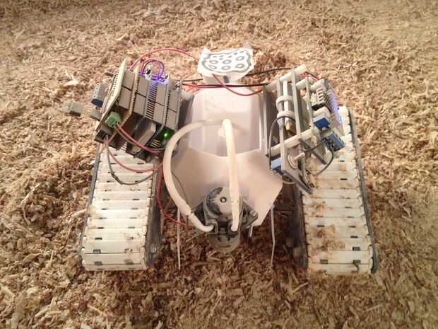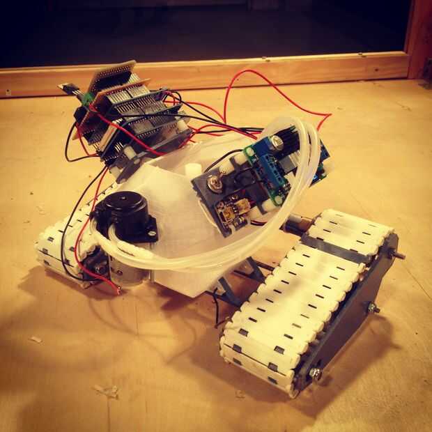 El segundo es el módulo de control que controla los motores y se comunica con el ordenador. La pila de protección de módulo de control se compone de un Arduino Uno, Adafruit protector de batería y batería de LiPo, dos X-Bee serie 1, un X-Bee protector así como un adaptador del USB de X-Bee por lo que se puede controlar desde su computadora y luego su propio controlador de motor H-puente y transistor Mosfet para el control de la bomba peristáltica. Alternativamente, puede recoger usted mismo un escudo de Moto Mama hbridge/xbee y ahorrarse algunos de soldadura. Que te cambie el Xbee shield y el controlador puente H y viene con un enorme disipador de calor, que se ve cool!