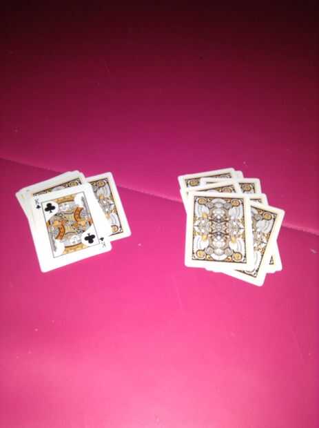 Tratar ahora el paquete de tarjetas en dos montones hasta que la tarjeta es con una tarjeta de otro.