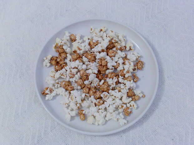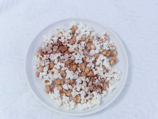 esta receta realmente no podría ser más fácil - mezcla junto una bolsa de palomitas de maíz con algunos aplastados alfajores y derretido el chocolate blanco y listo - ya tienes un tratamiento ridículamente adictivo, no vas a querer compartir!1 bolsa