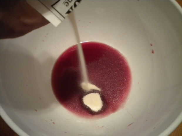 Batir suavemente para disolver completamente la gelatina y vierta la mezcla en una sartén antiadherente.