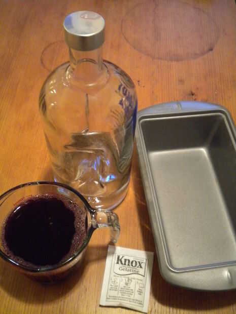 Añadir en un bol junto con el alcohol y los paquetes de la gelatina.