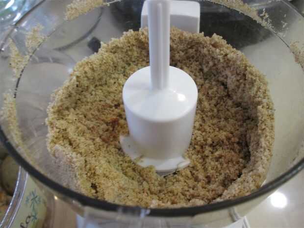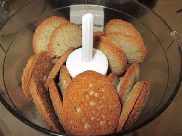 Moler hasta las galletas usando un procesador de alimentos o licuadora. Tengo un procesador de alimentos pequeño, así que tuve que moler las galletas en dos tandas. (Agregado algún tiempo en el proceso que estoy seguro).