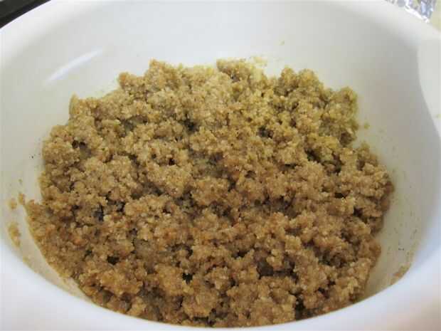 Mezclar la mantequilla fundida con la tierra encima de las galletas y las 2 cucharadas de agua hasta humedecer completamente.