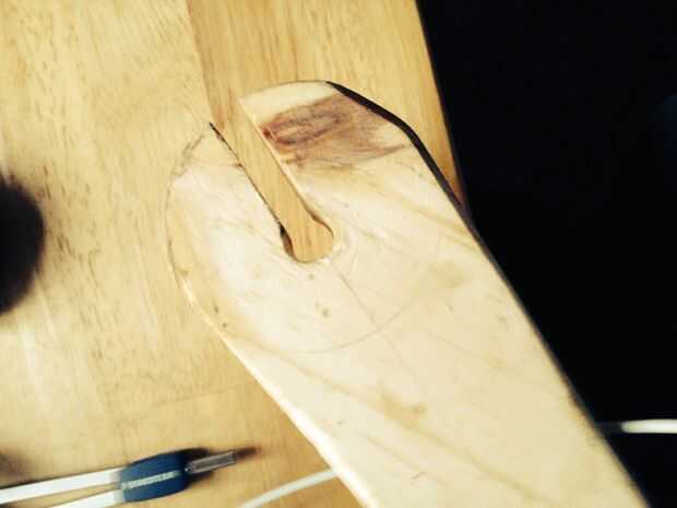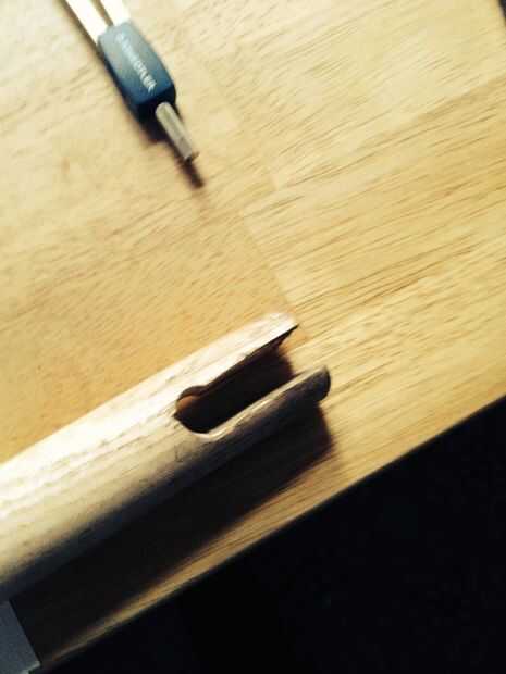 Entonces coge la sierra y vi una ranura con los orificios en línea con la diagonal. Esta ranura será 9 mm por lo que la fricción con la cuerda. Esto evita que la cuerda más en el lugar.