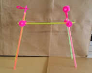 Pellizca muy duro hasta que dobla el plano paja. Esto mantendrá las piernas en... de lo contrario te resbalan fuera. También, tenga en cuenta que aún tienes que poner el swing, por lo que va a tomar el marco aparte para hacerlo. Otra cosa que quieres hacer es la parte superior de las piernas hacia el centro de la viga del ángulo y ángulo de las piernas lejos del centro como se muestra. (No doble la paja al hacerlo!) Esto hará que la estructura más estable. Deslice las barras de la cruz hacia arriba y hacia abajo hasta llegar a una estructura estable. Este es el marco.