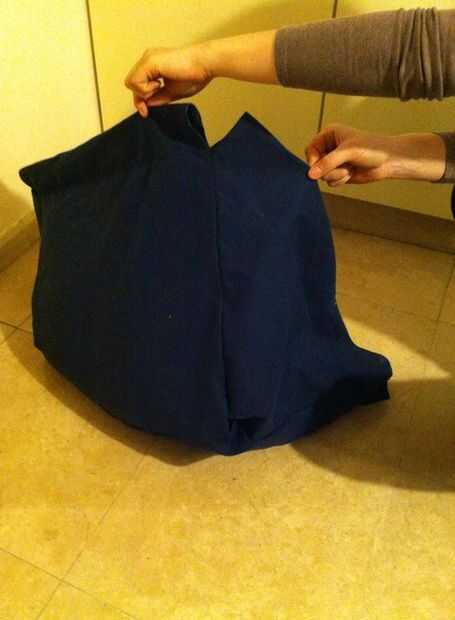 Después de este paso debe tener algo que parece la última foto. Tenga en cuenta que dejas una costura abierta para insertar las almohadillas.