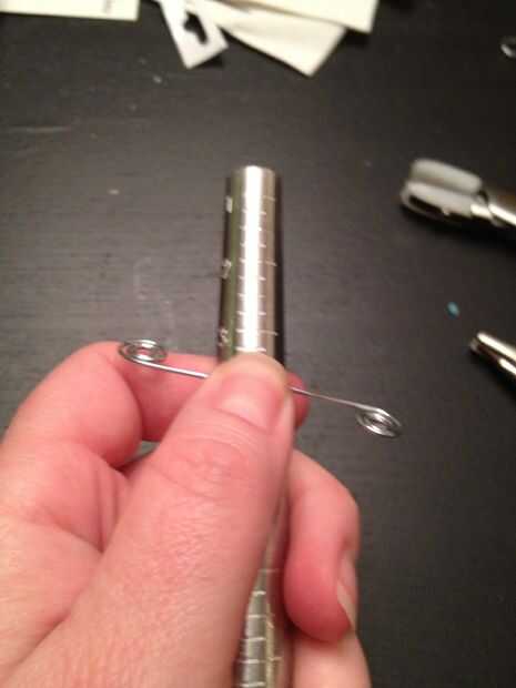 Coloque la parte recta contra el mandril y el clip alrededor de la curva, en el tamaño le da su anillo del ser. Puede que necesite suavizar su swirlies y moosh los planos con las pinzas de nylon. Suavemente doble y aplasta el clip alrededor del mandril hasta que el tamaño que quieras que sea.