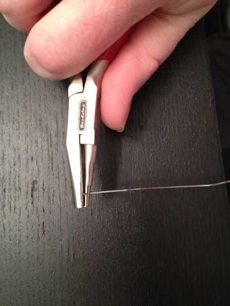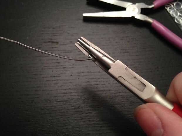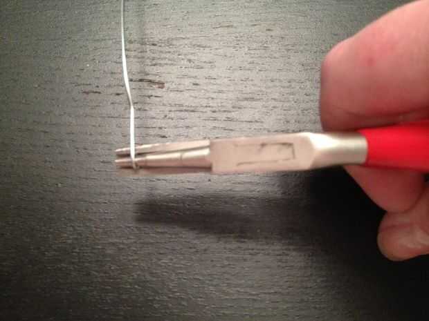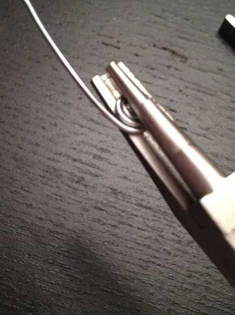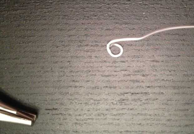Agarre un extremo con la pinza y con la otra mano envolver alrededor de sus alicates tan ajustadamente como sea posible, formando un bucle. Quitar el lazo de los alicates y girar hacia los lados por lo que se mantiene plano con los alicates. Tire de la parte recta del alambre alrededor del bucle, haciendo posteriormente grandes círculos alrededor del bucle original. Parada a medio camino encima del clip