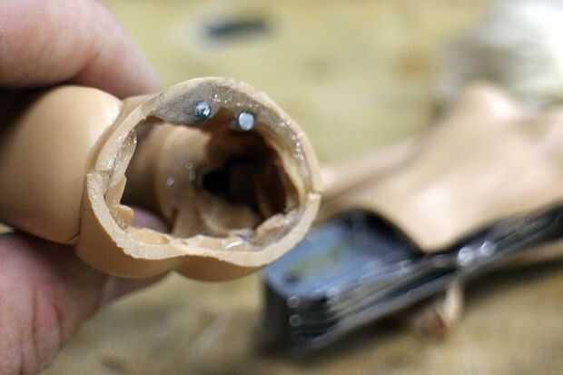 Después de estos imanes estaban firmemente en lugar he añadido un segundo imán a donde estaba al ras de la línea de corte, luego añaden un pequeño toque de epoxi antes de mover la parte inferior la mitad de la muñeca en su lugar. Permitiendo que el epoxi seco luego tiró la Barbie aparte otra vez y reforzado el segundo imán con epoxy más.