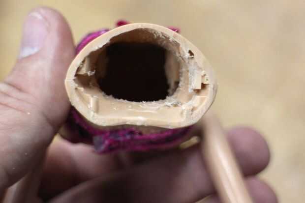 Utilizando una herramienta giratoria con una punta fina talla herramienta quité el plástico de apoyo y algunos de plástico conexión del interior de la muñeca.