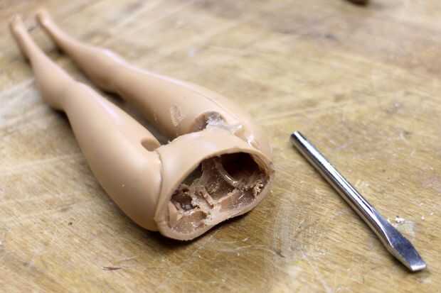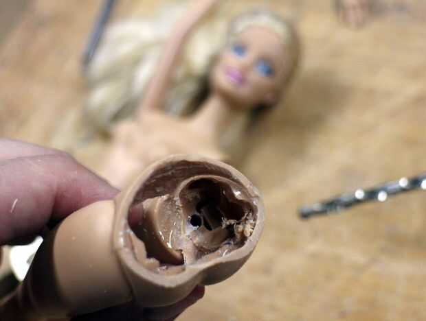 Con un destornillador barato me lo quitaron el mango con un disco de corte en una herramienta giratoria. Yo entonces cuidadosamente tallado hacia fuera una sección de la pierna de dentro de la cavidad de la cadera. Ya que estos son había mucho material quitado ya de guarnición la manija del cuchillo dentro de lo necesario para reforzar las piernas a las caderas con algunos epoxy en 2 partes.
