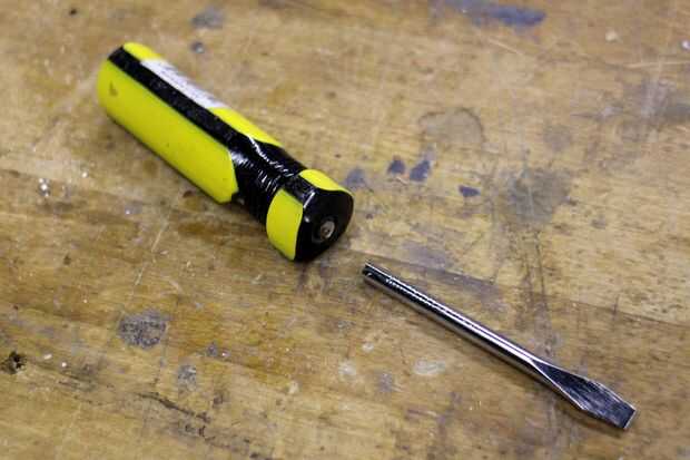 Viendo la oportunidad de utilizar las piernas decidí probar e incluye un destornillador que se revelaría cuando el cuerpo se tira aparte.